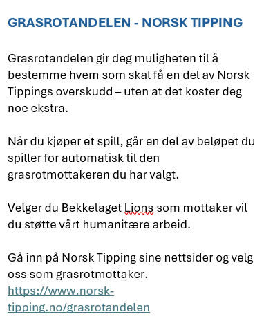 Bekkelagets Lions selger hageprodukter til inntekt for vårt humanitære arbeid og når du bestiller fra oss bidrar til å støtte dette arbeidet. Vi leverer direkte til deg uten ekstra kostnad. Du kan bestille allerede nå. Klikk mer nedenfor så får du tilgang til produkter og priser for 2026.